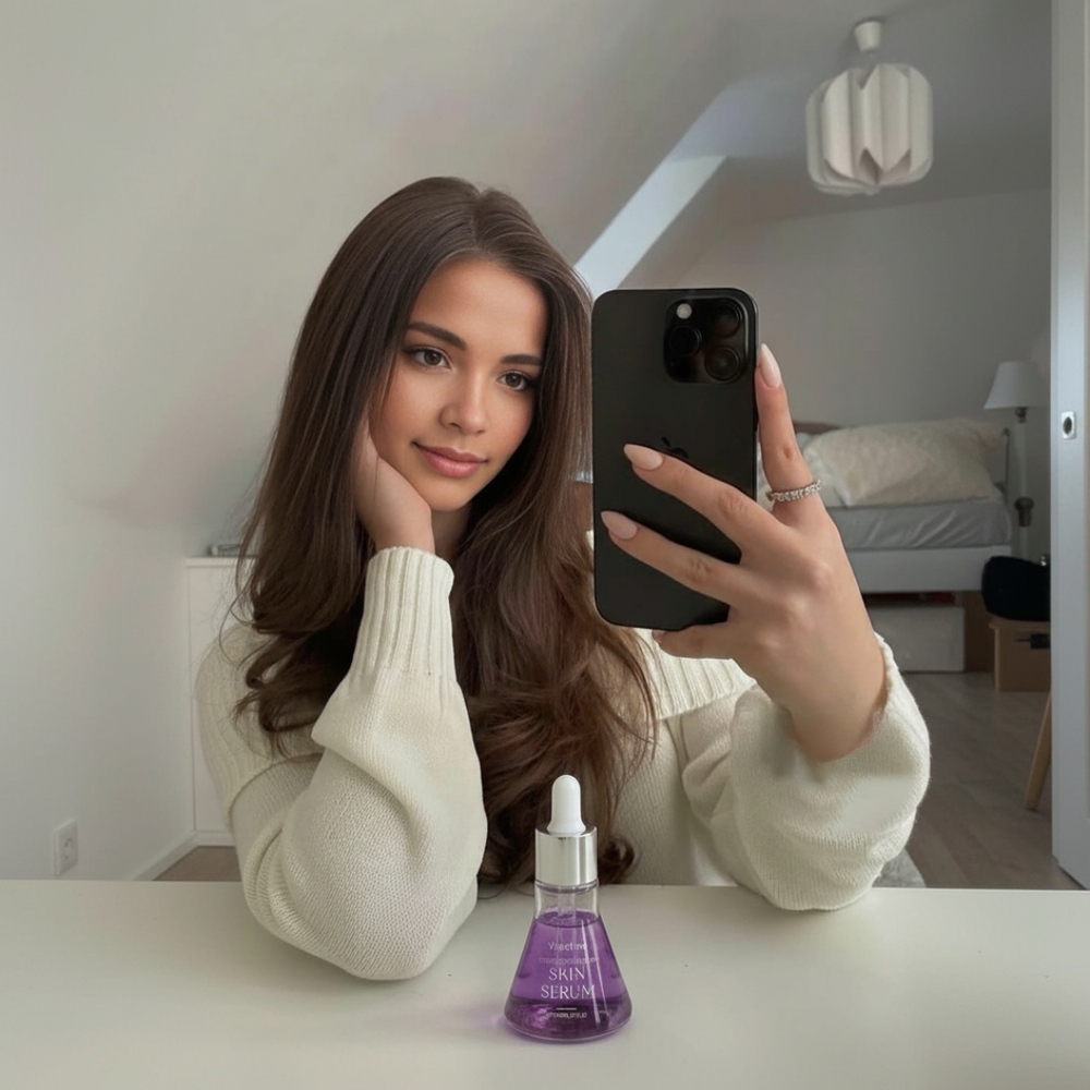 - Trage 3–5 Tropfen des Serums auf die saubere, trockene Haut auf